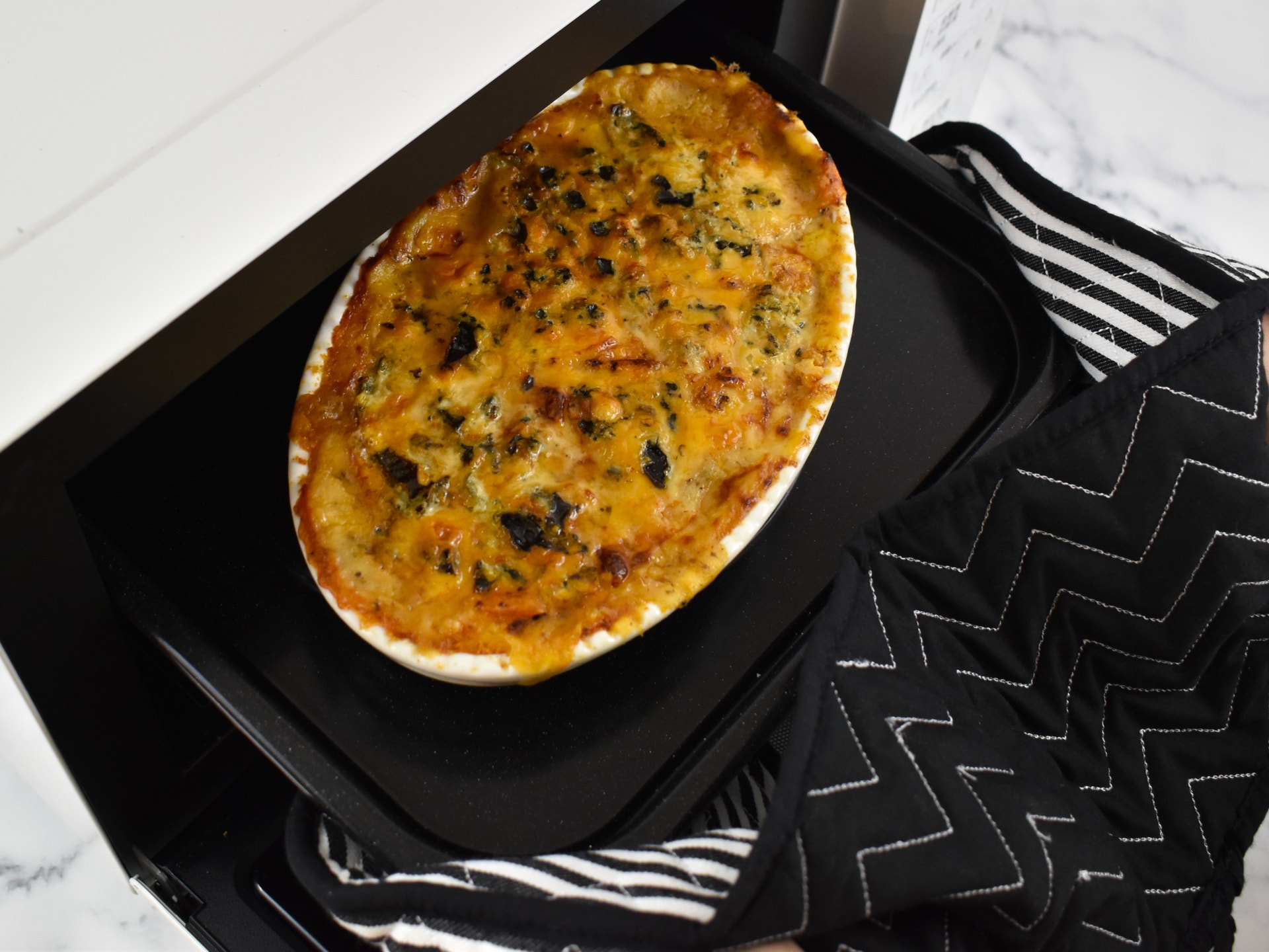 12. 180℃に温めたオーブンに入れて約8分程度、表面にこんがりと焼き色がつくまで焼き上げる。