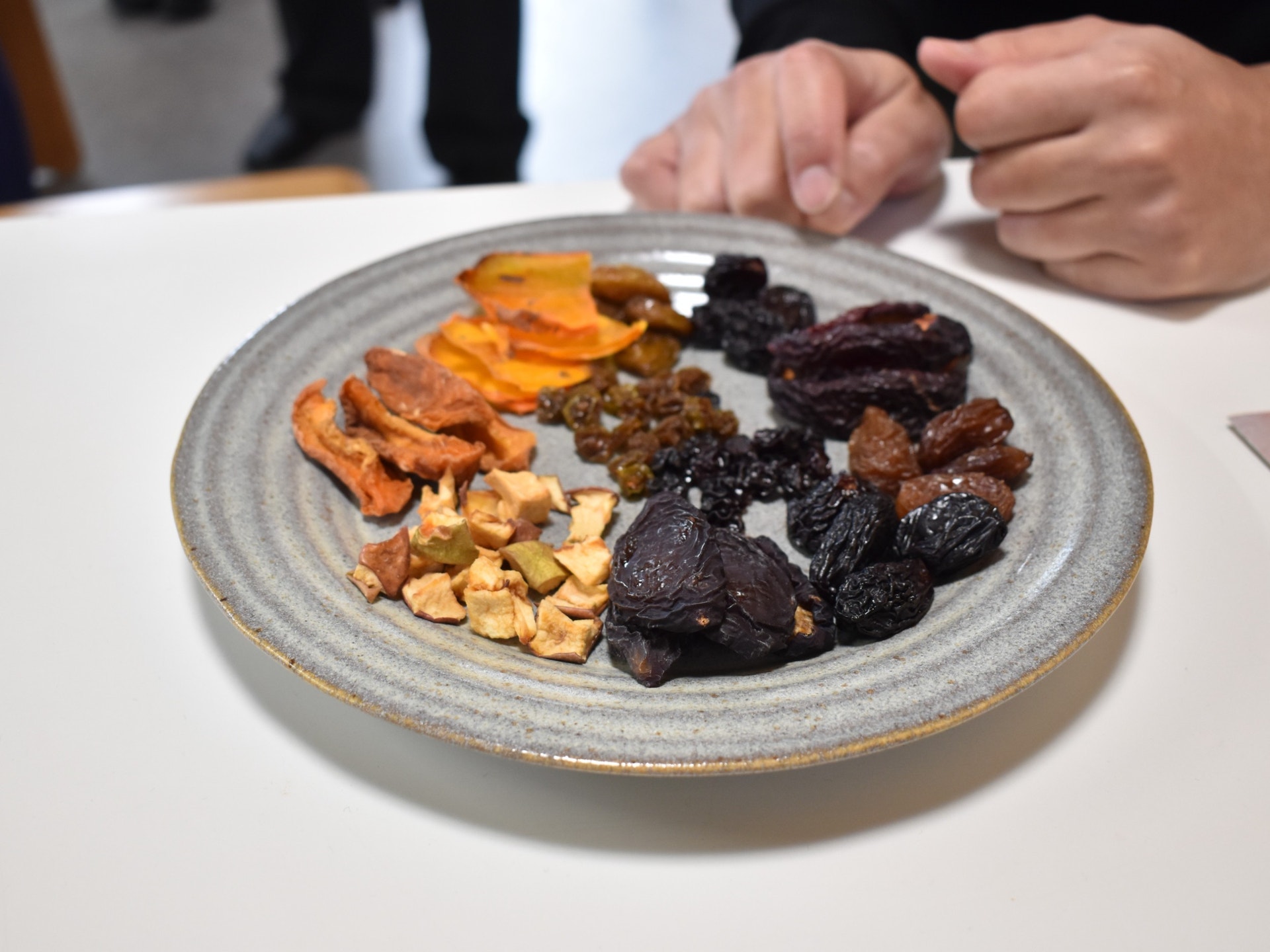 中野市『果実企画』がつくるドライフルーツ。ドライなのに瑞々しく、粒が大きく、旨みが凝縮していて、一同「本当にドライなの?」と感嘆するくらいの逸品。福岡店レストランのメニューに登場するそうなのでみなさん、ワイン片手にぜひおたのしみください。