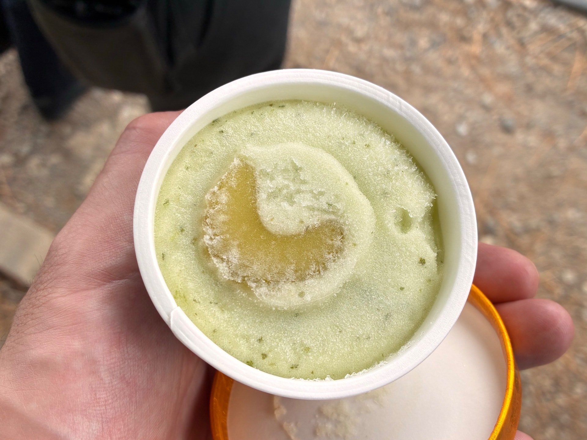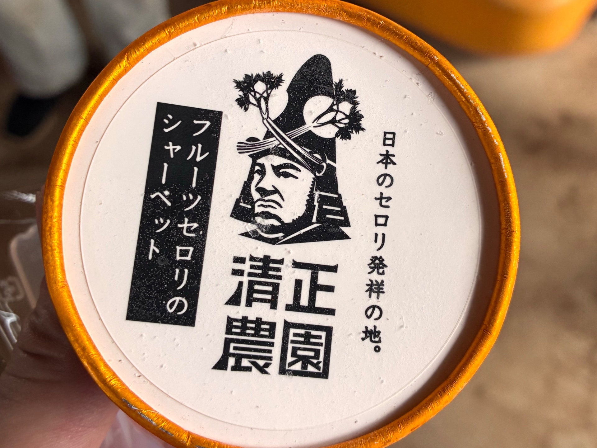 訪問時には穫時期ではなかったため、現地で味わうことが叶いませんでしたが、このフルーツセロリのシャーベットを試食させていただきました。