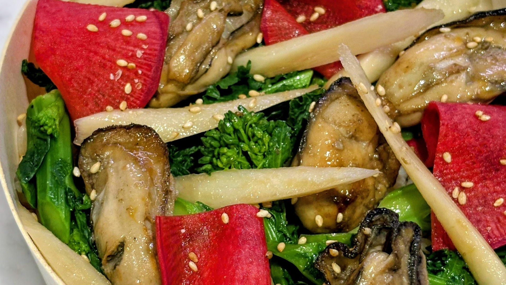 「菊池水田ごぼうと牡蠣のわっぱ飯」としてご用意しております🐓