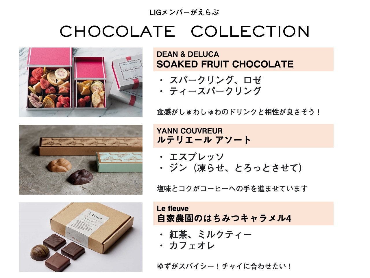 そのまま、いただいてもおいしいチョコレートばかりですが、ペアリングによって、そのチョコレートに隠された味わいが引き立ったり、補完しあったり。