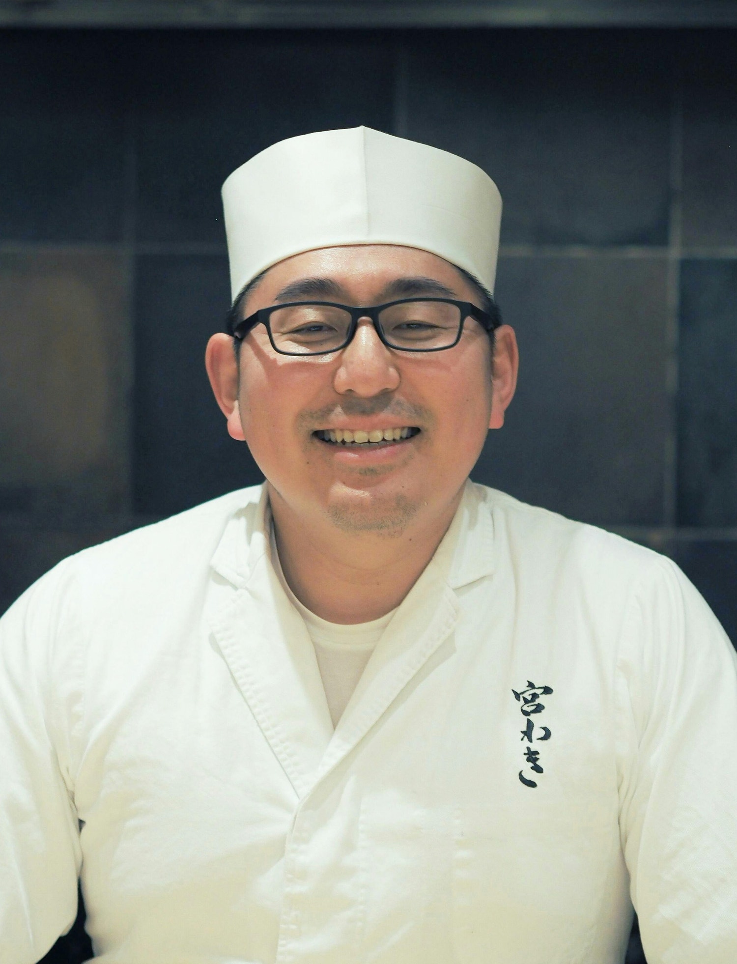 1983年東京都生まれ。東京・恵比寿の割烹『吉住(よしずみ)』で修行を始め、表参道や代々木などの名店で研鑽を積む。四谷三丁目『京料理 八平』齋藤真悟氏に師事した後、2012年に独立し、『宮わき』を開店。22年に港区三田に移転。宮脇氏の「割烹文化を継承したい」という想いから、アラカルトメニューでもたのしめるスタイルが注目を集めている。